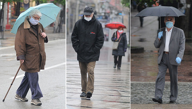 Kiša koja celog dana pada u Kraljevu i okolini nije omela starije od 65 godina da večeras posle višednevne zabrane izlaska prošetaju ulicama grada.