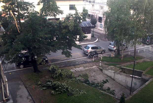 Snažan vetar, praćen kišom i gradonosnim padavinama pogodio je Kruševac nekih 15 minuta pre ponoći, a neposredno pre toga čulo se dejstvo protivgradne odbrane.Drvoredi u ulicama u širem centru Kruševca pretrpeli su štetu,a usled buke prouzrokovane naletima grmljevine aktivirali su se alarmi na parkiranim vozilima.