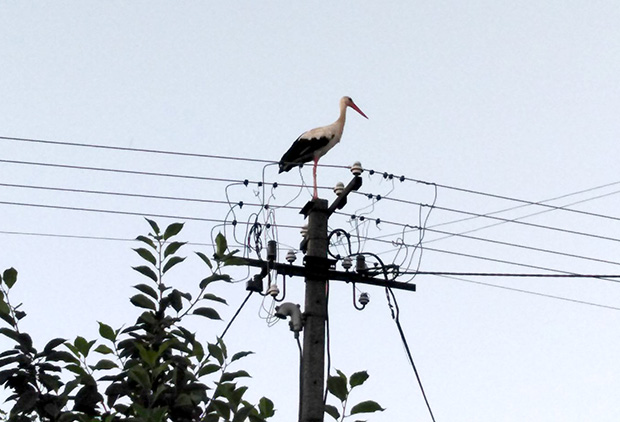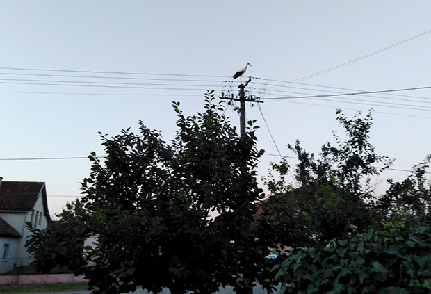 Usamljena roda, iznad stotinu žica i kablova, a električnom stubu, ponosno je čuvala dostojanstvo svog roda.