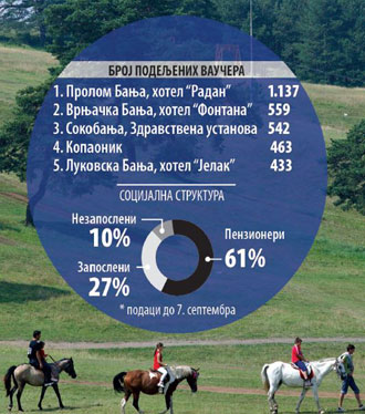 Najviše vaučera koristi se za banje u Srbiji, u čemu prednjači Prolom kod Kuršumlije. Slede Vrnjačka, Sokobanja, kao i Lukovska Banja. Na listi pet najtraženijih destinacija nalazi se još i - Kopaonik.