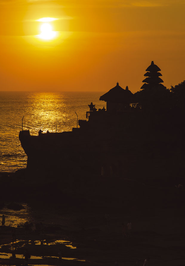 Najupečatljiviji od svih hramova je Tanah Lot, izgrađen u 16. veku, na vrhu stenovitog minijaturnog ostrvceta koje izviruje iz zapenušanih talasa. U vreme plime, voda doseže do zidova hrama zapljuskujući ga sa svih strana, ali on vekovima odoleva njenim naletima, što ostavlja posetioce bez daha. Hram je izgradio jedan od poslednjih sveštenika, koji su sa Jave stigli na Bali, a postoji verovanje da ga od zlih duhova i provalnika čuvaju otrovne zmije. Tu je, inače, jedan od najlepših zalazaka sunca, pa je u večernjim satima neopisiva gužva.