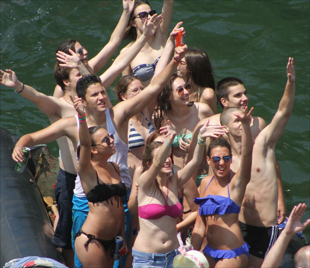 - "Veseli spust" je događaj koji se brižljivo planira, sa euforijom iščekuje i na kome se s ponosom učestvuje, a broj učesnika je iz godine u godinu sve veći - kaže Tijago Fereira iz organizacije "Srbija za mlade". - Veče uoči "Veseleg spusta" Kraljevo se pretvara u veliki "stejdž" gde su žurke na svakom koraku, u kafićima, baštama, diskotekama, pored Ibra.