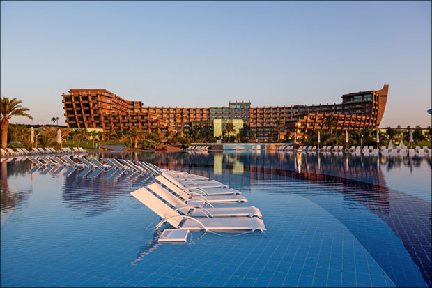 Ovaj novi hotel je okružen prelepim zelenilom i predstavlja jedno od najlepših mesta za odmor na celom Kipru. Ima 288 deluxe soba sa pogledom na more, 280 standardnih soba, 38 apartamana, pet soba za osobe sa invaliditetom, restorane (Flora, Alabora, Fora Beach, poslastičarnica), barove (English Pub, Ada Bar, Vitamin Bar, Pool Bar, Disco, Aqua bar, Sun & Sun Bar, Moon Arena Bar, Holiday Village Bar), Spa centar, akva park, diskoteku, kazino. Ni najmlađi nisu zapostavljeni pa je za njih tu prelep dečiji bazen, dečiji klub, igralište, mini disko.