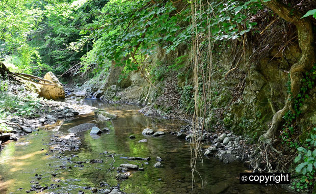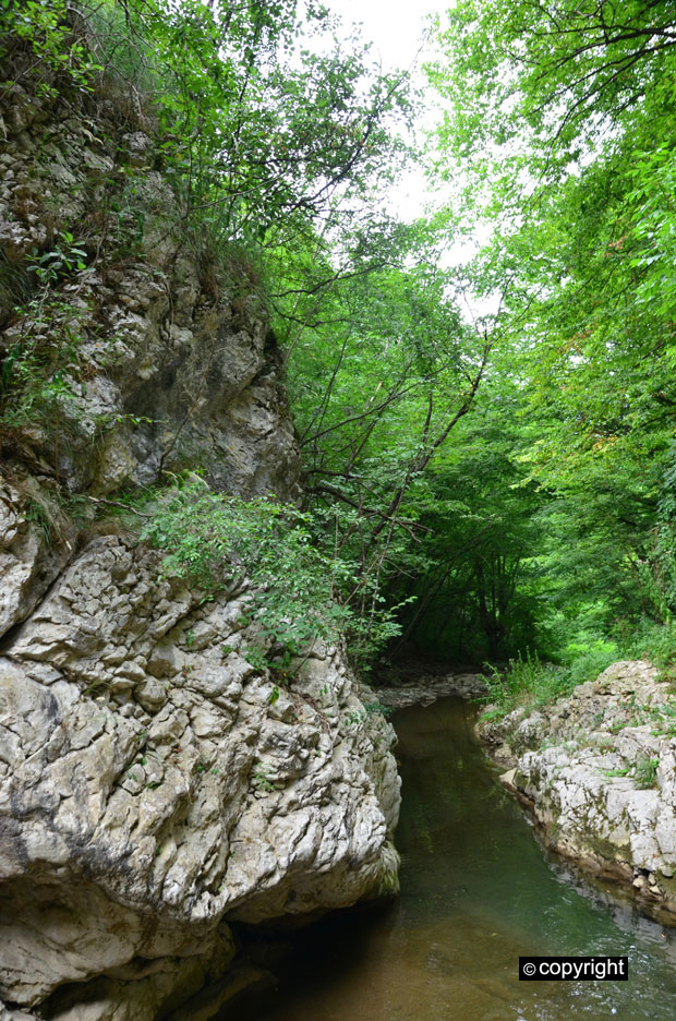Moćne litice klisure su povremeno šire u prostrane dvorane pod svodovima šume, u kojima može da se odmara u dremljivoj tišini šarene senke. Nekada je duž celog kanjona uz reku išla skrivena staza koju su teško oštetile velike poplave poslednjih godina. Ipak ona je očuvana na kritičnim mestima gde se zaobilaze veliki slapovimi. Uski kanjon se širi u zelenu dolinu u podnožju manastira Pustinja, gde se nalazi lekoviti izvor Mlačište iz koga pršti okrepljujuća hladna voda. Odatle se zidovi kanjona sve češće sužavaju u tesnace koji naglo prelaze u prostrane stepenike preko kojih pršte mali slapovi.