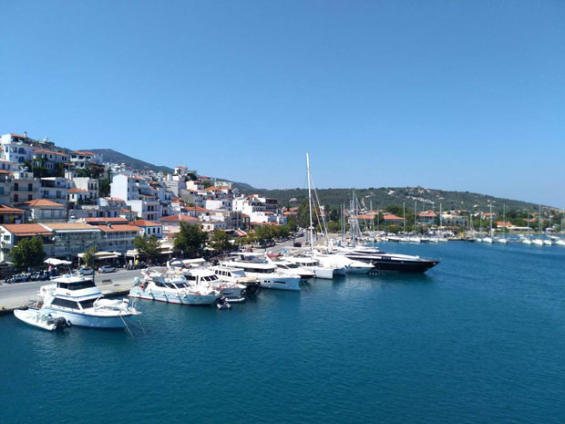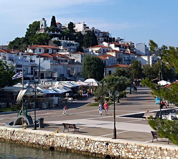 Glavni grad Skijatos na "prvu loptu" daje odgovor na pitanje zašto je ovo spoj mondenske i tradicionalne Grčke. Prepun belih kućica sa plavim prozorima i jednostavnih taverni smeštenih u uskim uličicama, ali i modernih kafića i noćnih klubova, turiste bukvalno ostavlja bez daha. I ovde su cene "šarene", pa se kod naših turista popularna giros pita može naći i za 2,7 evra, jogurt sladoled za dva, a tradicionalna domaća kafa za tri evra. "Fensi" mesta podrazumevaju i dublji džep, pa tako razni kokteli koštaju od 8 do 12 evra, piva od 5 do 10, a jednostavne letnje salate od 8 do 15.